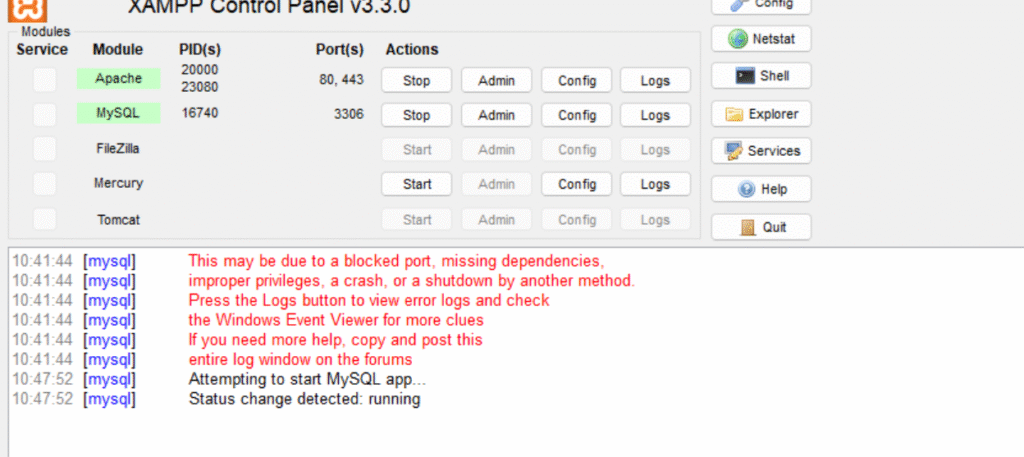 How To Fix Mysql is not running on Xammp